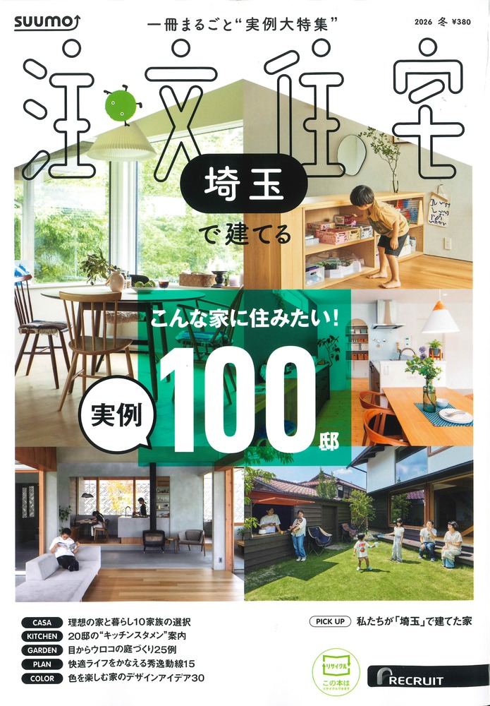 2025/11/22 雑誌掲載 『SUUMO 注文住宅 埼玉で家を建てる 2025年秋号』へ掲載! 注文住宅雑誌2026年冬号(11月21発売)へ掲載致しました! 掲載ページをご紹介!■特集『私たちが、埼玉で建てた家』 P20~21掲載物件の施工実例写真はこちら→テラスをコの字型で囲む平屋住宅雑誌では“間取り図付き"でお住まいのポイントをご紹介しています。 ■モデルハウス&イベント P26■実例ラインナップ P204「平屋のガレージハウス」広い庭で暮らしを愉しむ家(HP施工実例、後日更新!) ■建築会社クローズアップ P254~259趣味もライフスタイルもデザインに妥協しない「世界でひとつ」を創る 4000万以下の上質なガレージハウス(右)と、3000万以下の建築家とつくる、デザイン住宅(左)をご紹介! ■裏表紙 書店はもちろん、電子書籍でも販売しています。是非お手に取ってご覧ください。