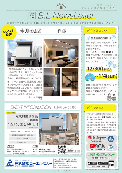 Newsletter|埼玉県川越市・さいたま市の注文住宅は一級建築士事務所ビー・エル・ビルド