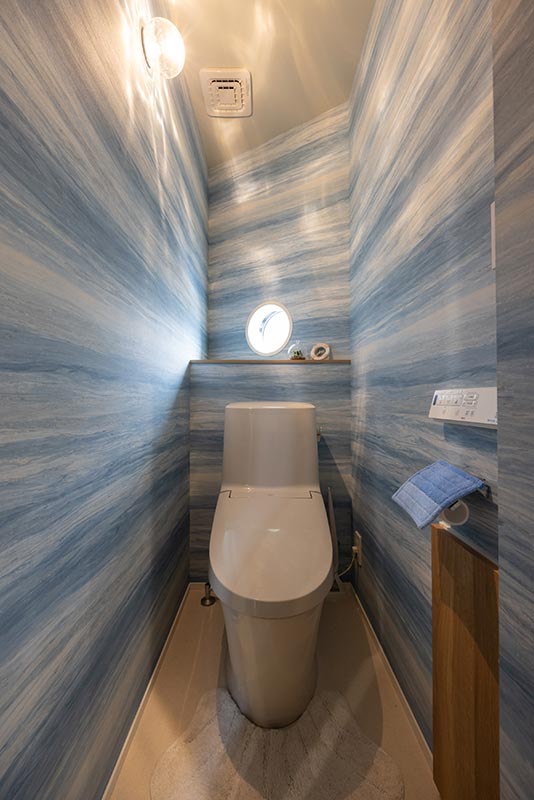 - ガレージ、外観(丸窓)、トグルスイッチ、土地を活かした間取り、2Fトイレ、大きな窓、ニッチ(マグネットがつくのも便利)